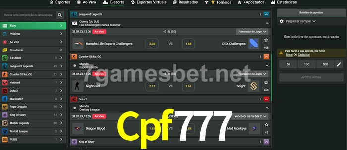 A aposta Cpf777 oferece aos jogadores a experiência mais conveniente de apostas em eSports!